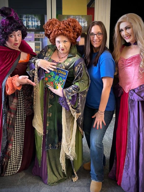 One unforgettable highlight was a visit from the Sanderson Sisters themselves! They were in rare form, and when they saw my photo on the Gobbling Ghouls author page, they insisted they needed to rescue me from inside my book. I couldn’t resist saying, “My name is Paige—I’m used to being in books!” Winifred gave me a sly look and replied, “She even tells jokes,” before pulling out her own mysterious book… which, needless to say, I did not dare open. 😊